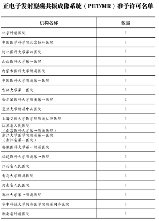 ? 正電子發(fā)射型磁共振成像系統(tǒng)(PET/MR)。加強對在用設備使用狀況的跟蹤和評價。到2020年底,全國暫規(guī)劃配置33臺,按華北、東北、華東、中南、西南、西北6個區(qū)域配置,其中新增28臺。