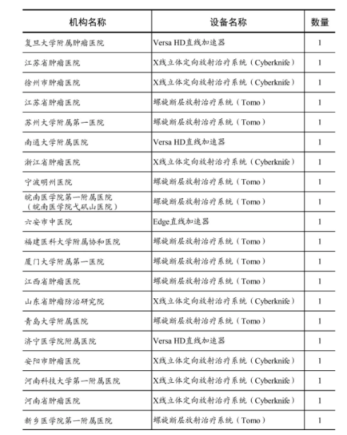 ? 高端放射治療設備。到2020年底,全國規(guī)劃配置216臺,其中新增188臺。