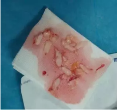 超聲引導(dǎo)下抽吸旋切取出的腫塊組織