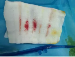 M20引導(dǎo)下,抽吸針找到右側(cè)宮角處再次清掃