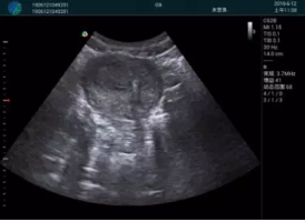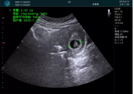 清晰顯示孕囊,通過(guò)軟件包計(jì)算孕齡7w+6d