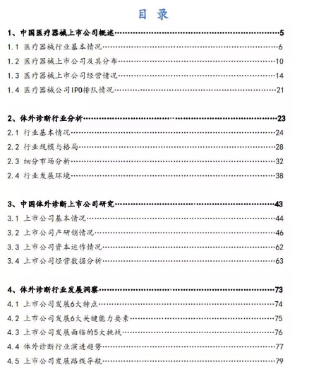 從目錄上看,白皮書(shū)包含體外診斷行業(yè)分析、IVD上市公司數(shù)據(jù)分析以及IVD行業(yè)發(fā)展洞察等內(nèi)容,其中每個(gè)章節(jié)都有大量圖表、數(shù)據(jù)及分析報(bào)告,小編覺(jué)得,這份報(bào)告對(duì)于IVD人了解行業(yè),做規(guī)劃和布局是非常有幫助的。