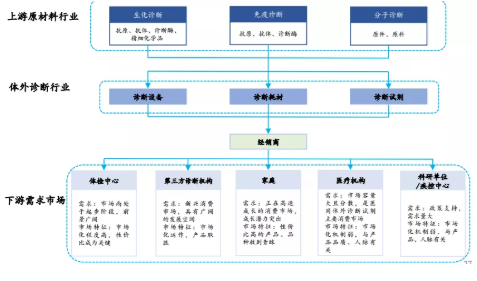 (3)試劑開(kāi)發(fā)系列化:體外診斷的產(chǎn)品向系列化發(fā)展,從疾病預(yù)防、早期篩查到臨床診斷再到療效檢測(cè)最后到預(yù)后判斷。不再局限于臨床診斷,開(kāi)始向上下游不斷擴(kuò)展,形成系列產(chǎn)品。如針對(duì)孕婦群體的孕前檢查、孕期檢查、后期檢測(cè)等。
