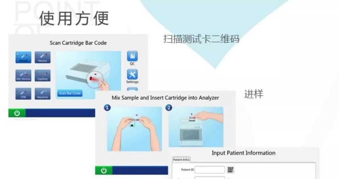 但是現(xiàn)在,使用POCT診斷設(shè)備,在病人的身邊就能直接抽血化驗,2-3分鐘可得出檢測結(jié)果,醫(yī)生當場根據(jù)結(jié)果制定治療方案。