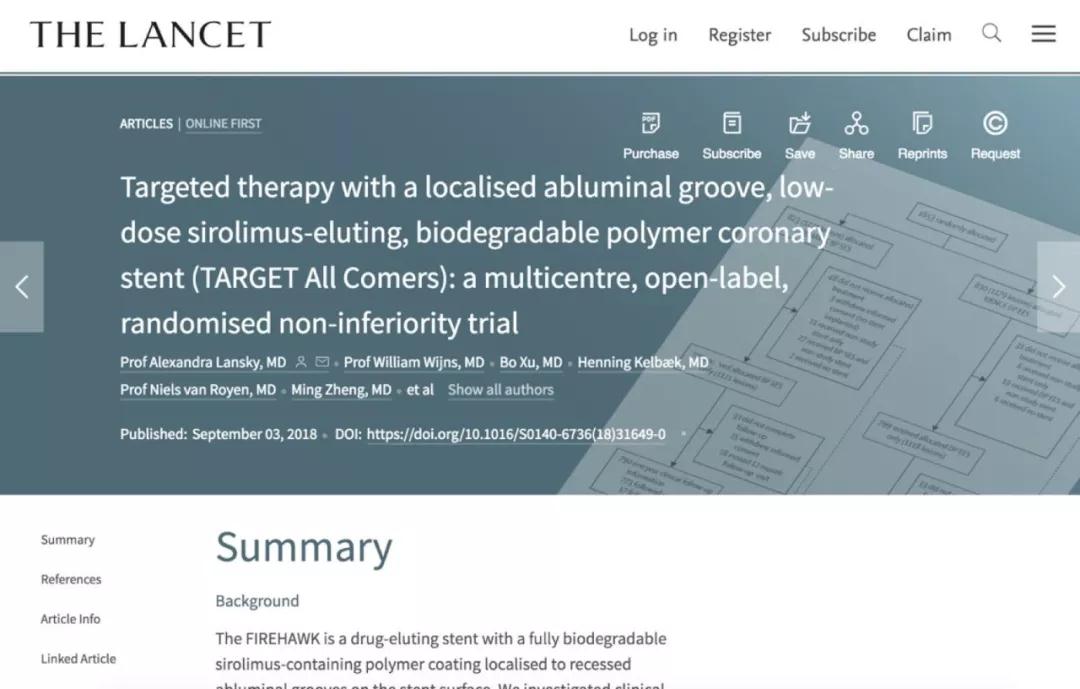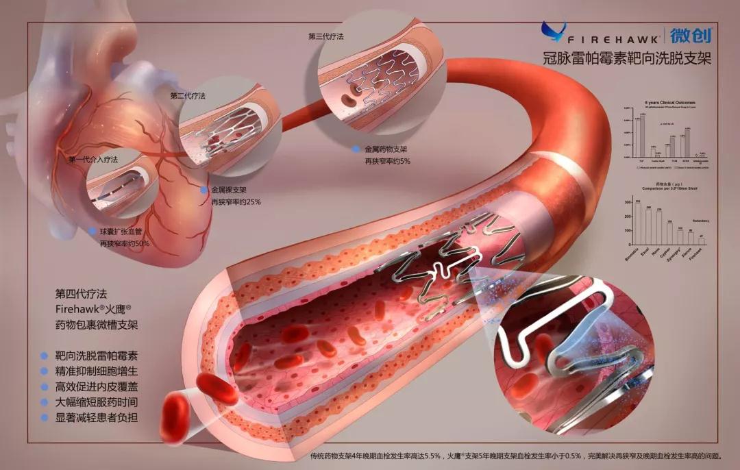 最終的試驗(yàn)結(jié)果證明中國(guó)醫(yī)療器械此行確實(shí)底氣十足。火鷹作為第三代靶向藥物洗脫支架,證明了患者植入后,受到治療的血管區(qū)域能夠在早期快速愈合,因?yàn)槠鋭?chuàng)新性的微槽包裹藥物、生物可降解聚合物的設(shè)計(jì),以及較低的載藥量(僅需同類產(chǎn)品三分之一的載藥量即可實(shí)現(xiàn)同等療效),安全性大幅增加,可有效減少晚期血栓事件的發(fā)生,達(dá)到了世界頂尖水平。如今,這些結(jié)論登上了《柳葉刀》,中國(guó)智造的“吶喊”迅速在全球醫(yī)學(xué)界傳播開來(lái)。