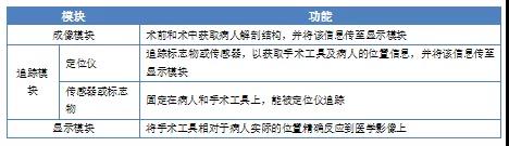 手術(shù)導(dǎo)航系統(tǒng)使醫(yī)生在微創(chuàng)手術(shù)時(shí)能了解手術(shù)工具相對(duì)于解剖結(jié)構(gòu)的位置。在手術(shù)導(dǎo)航系統(tǒng)出現(xiàn)之前,醫(yī)生只能依靠?jī)?nèi)鏡進(jìn)行微創(chuàng)手術(shù),或?qū)嵤╅_放式手術(shù)。相比開放性手術(shù),微創(chuàng)手術(shù)有創(chuàng)傷小的優(yōu)勢(shì);相比內(nèi)窺鏡介導(dǎo)下的微創(chuàng)手術(shù),手術(shù)導(dǎo)航系統(tǒng)導(dǎo)航下的微創(chuàng)手術(shù)有精度高、使用范圍廣的優(yōu)勢(shì)。手術(shù)導(dǎo)航系統(tǒng)一般包括三個(gè)模塊,具體如下表。