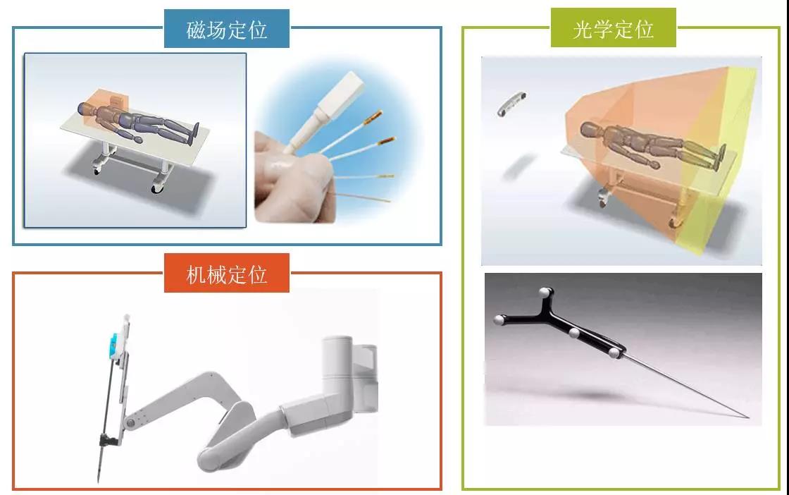 目前常見三種定位系統(tǒng) :1)磁場(chǎng)定位;2)光學(xué)定位;3)機(jī)械定位。這三種定位系統(tǒng)在定位精度上都能滿足目前手術(shù)導(dǎo)航系統(tǒng)的需求,但每種系統(tǒng)都有其局限性:磁場(chǎng)定位易受鐵磁性物體干擾,而且不能和MRI設(shè)備同時(shí)使用,精度約為1mm和0.5°;光學(xué)定位必須保證光路暢通,且所追蹤物體必須為剛性,其分別率可達(dá)到(<0.1mm);機(jī)械定位靈活性有限,設(shè)備所占體積較大。對(duì)于腹腔手術(shù)而言,例如肝臟等軟組織多位于人體較深部位,光學(xué)定位可能會(huì)受到一定的限制,通過(guò)腹腔鏡進(jìn)行機(jī)械定位是目前手術(shù)機(jī)器人的主流技術(shù)選擇。