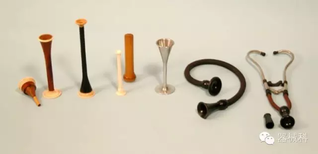 1816年冬,法國巴黎內克爾總醫(yī)院(H?pital Necker)醫(yī)生何內·希歐斐列·海辛特·雷奈克(René-Théophile-Hyacinthe Laennec)為了出診應急給一位貴族小姐診斷心臟問題,使用了一張厚紙卷成的圓筒來過濾聲音,由此誕生了世界上第一臺聽診器原型。隨后雷內克醫(yī)生馬上找人專門制作一根空心木管,長30cm,口徑5cm,為了便于攜帶,從中剖分為兩段,有螺紋可以旋轉連接,這就是第一個木質聽診器,它與現(xiàn)在產科用來聽胎兒心音的單耳式木制聽診器很相似。因為這種聽診器樣子像笛子,所以被稱為“醫(yī)生的笛子”。