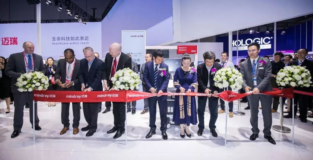開幕當(dāng)日,四位來自美國頂級醫(yī)院的臨床工程大咖、以及中華醫(yī)學(xué)會超聲專委會副主任委員兼婦產(chǎn)學(xué)組組長田家瑋教授、上海交通大學(xué)醫(yī)學(xué)院附屬瑞金醫(yī)院超聲診斷科主任詹維偉教授、邁瑞醫(yī)療高級副總裁李在文,邁瑞國內(nèi)營銷副總經(jīng)理黃鵬程等共同出席了智能高端婦產(chǎn)超聲女媧 Resona 8 的剪彩儀式。