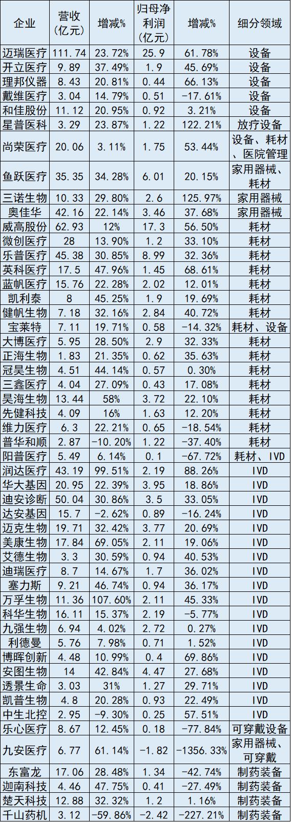 有超過(guò)9成的國(guó)內(nèi)械企均實(shí)現(xiàn)了營(yíng)收正增長(zhǎng),其中近7成的營(yíng)收同比增速還在20%以上,像潤(rùn)達(dá)醫(yī)療和萬(wàn)孚生物還實(shí)現(xiàn)了營(yíng)收翻倍。