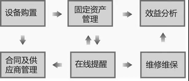 一是在管理理念上重購(gòu)置輕管理,對(duì)設(shè)備管理未形成科學(xué)的考核評(píng)價(jià)體系,缺乏行之有效的管理制度;二是設(shè)備管理以靜態(tài)數(shù)據(jù)管理為主,缺乏對(duì)應(yīng)信息的深層挖掘和再利用;三是設(shè)備臺(tái)賬及檔案信息不完整,不能體現(xiàn)設(shè)備運(yùn)行情況,難以為設(shè)備采購(gòu)、更新?lián)Q代提供決策指導(dǎo);四是從采購(gòu)至設(shè)備報(bào)廢10余環(huán)節(jié)中涉及多部門(mén),因職能交叉與技術(shù)限制而缺乏連續(xù)性。