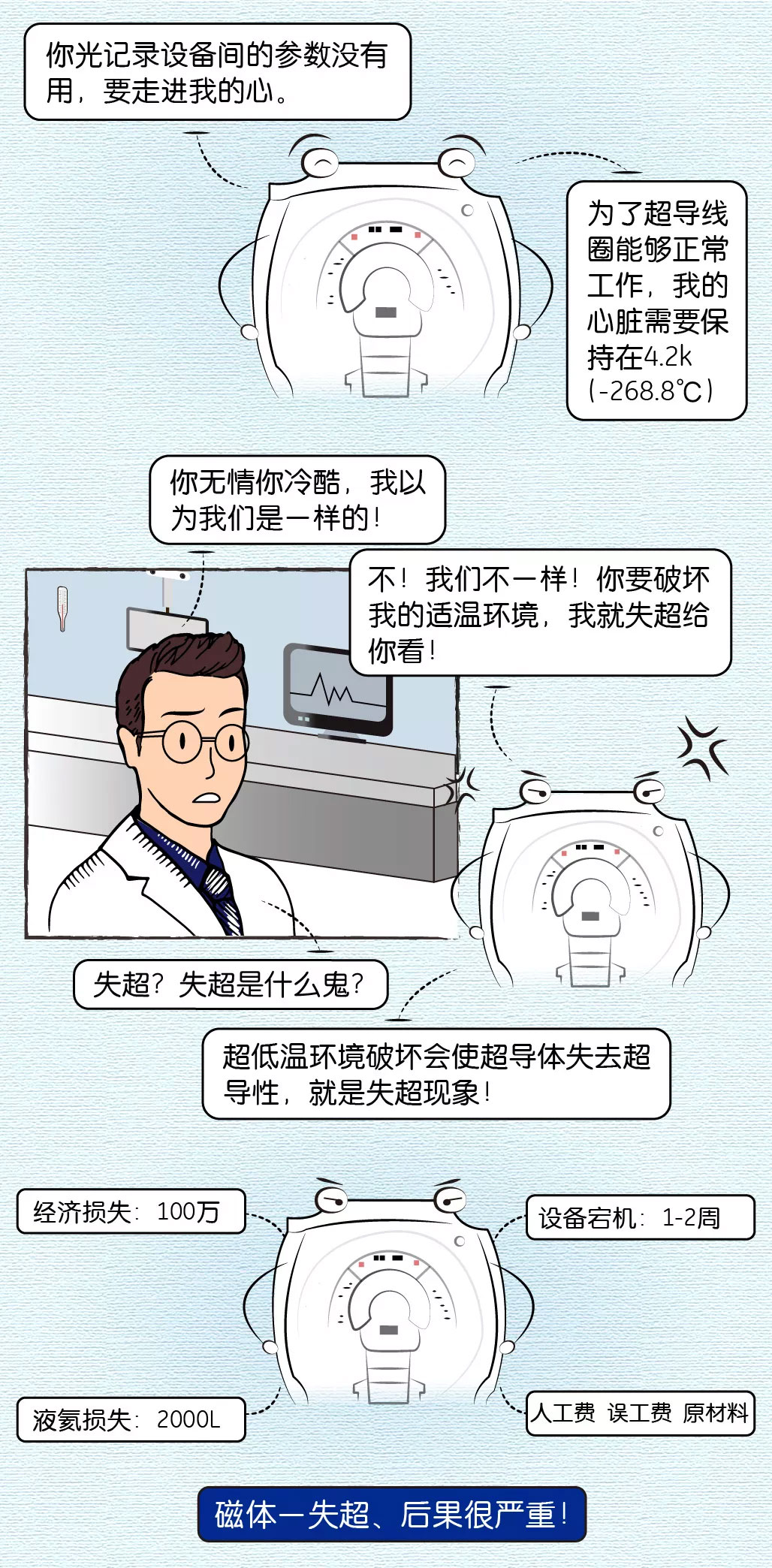 失超對于設(shè)備的運(yùn)營方而言是近乎毀滅性的災(zāi)難,它意味著:直接經(jīng)濟(jì)損失100萬、設(shè)備宕機(jī)1-2周、液氦損失2000L,外加上人工費(fèi)、誤工費(fèi)和材料費(fèi)等等。一句話,為免MRI發(fā)生失超,設(shè)備管理員須時(shí)刻提防、小心呵護(hù)。