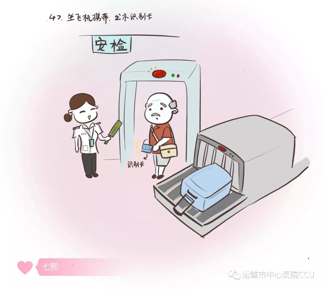 安檢:乘坐飛機,安檢時,應對工作人員出示起搏器識別卡。