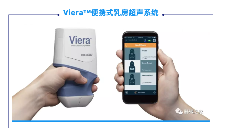POCUS進入乳房成像的另一個例子是2018年Hologic新推出的Viera?便攜式乳房超聲系統(tǒng)。無線超聲掃描儀為醫(yī)生提供了早期診斷和優(yōu)化臨床工作流程的機會。它可以指導(dǎo)介入程序,如活組織檢查,標記放置和電線本地化。它還可以將乳房圖像傳輸?shù)街悄茉O(shè)備或PACS。